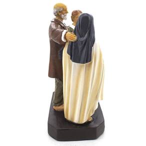 Imagem São Luís e Santa Zélia Pais de Santa Terezinha Resina 15 cm São Luís e Santa Zélia são os pais de Santa Terezinha do Menino Jesus, uma santa católica conhecida como a Santa das Rosas ou a Pequena Flor. São Luís, cujo nome completo é Louis Martin, nasceu em 22 de agosto de 1823 em Bordeaux, na França, e faleceu em 29 de julho de 1894 em Lisieux, França. Santa Zélia, cujo nome completo é Marie-Azélie Guérin, nasceu em 23 de dezembro de 1831 em Gandelain, França, e faleceu em 28 de agosto de 1877 em Alençon, França. São Luís e Santa Zélia são conhecidos por terem sido pais exemplares e por terem educado Santa Terezinha em uma família profundamente religiosa. Eles eram conhecidos por sua devoção à fé católica e por sua vida de oração. Após a morte de Zélia, Luís tornou-se um recluso do Carmelo de Lisieux, onde suas filhas se tornaram freiras, e faleceu como um homem profundamente piedoso. São Luís e Santa Zélia são considerados padroeiros das famílias, dos pais e das pessoas que sofrem com a perda de filhos. Sua festa litúrgica é celebrada em 12 de julho, enquanto a festa de Santa Terezinha é celebrada em 1º de outubro. A vida piedosa e o exemplo de São Luís e Santa Zélia como pais de Santa Terezinha têm sido uma inspiração para muitos fiéis em sua busca por uma vida de fé e devoção familiar. Dimensões: altura: 15 cm - Largura: 12 cm - Profundidade: 7 cm Dimensões aproximadas do produto. Marca: Não Informado
