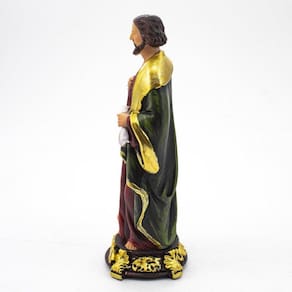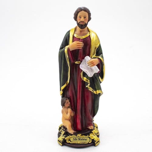 Imagem São Mateus Resina 15 cm São Mateus era coletor de impostos em Cafarnaum. Era publicano e desprezado pelo povo por fazer parte dos romanos opressores. Certo dia, ouviu a voz de um homem, que lhe disse: Segue-me. Ele se levantou e o seguiu para sempre. Aquele homem era Jesus. Desde então, Mateus não foi mais o mesmo. A festa liturgica é comemorada dia 21 de setembro, e é considerado o padroeiro dos contabilistas. Dimensões: altura: 15 cm - Largura: 5 cm - Profundidade: 5 cm Dimensões aproximadas do produto. Produto pintado a mão, podendo sofrer variações de cores. Sao, Matheus, Marca: Não Informado