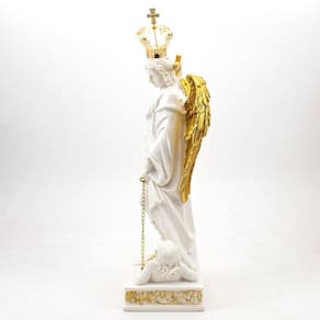 Imagem São Miguel Arcanjo Coroa Importado Resina Branco 31 cm Arcanjo, do latim archangelus é o anjo principal ou anjo da mais alta ordem a oitava na hierarquia celeste. Segundo a mesma Bíblia os arcanjos são sete mas apenas três São mencionados: Miguel, Rafael e Gabriel. Miguel, Michael ou Micha, é um arcanjo nas doutrinas religiosas cristãs, judaicas e islâmicas. Os católicos, anglicanos, ortodoxos e luteranos se referem a ele como São Miguel Arcanjo ou simplesmente como São Miguel. É percebido como o protetor do povo de Deus, sendo assim, nós que, segundo a Tradição, somos o novo povo de Deus, devemos pedir, constantemente, a sua proteção. daniel 12, 1 Os outros podem servir como referência, mas não são doutrina. - Ariel, Azrael, Chamuel e Jofiel. Dimensões: altura: 31 cm - Largura: 14 cm - Profundidade: 9 cm Dimensões aproximadas do produto. Marca: Amém Decoração Religiosa Ean: 6988051083095