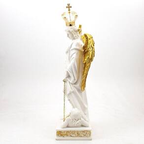 Imagem São Miguel Arcanjo Coroa Resina Branco 31 cm Arcanjo, do latim archangelus é o anjo principal ou anjo da mais alta ordem a oitava na hierarquia celeste. Segundo a mesma Bíblia os arcanjos são sete mas apenas três São mencionados: Miguel, Rafael e Gabriel. Miguel, Michael ou Micha, é um arcanjo nas doutrinas religiosas cristãs, judaicas e islâmicas. Os católicos, anglicanos, ortodoxos e luteranos se referem a ele como São Miguel Arcanjo ou simplesmente como São Miguel. É percebido como o protetor do povo de Deus, sendo assim, nós que, segundo a Tradição, somos o novo povo de Deus, devemos pedir, constantemente, a sua proteção. daniel 12, 1 Os outros podem servir como referência, mas não são doutrina. - Ariel, Azrael, Chamuel e Jofiel. Dimensões: altura: 31 cm - Largura: 14 cm - Profundidade: 9 cm Dimensões aproximadas do produto. Marca: Não Informado