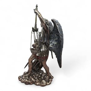 Características do Produto: Design imponente e detalhado – São Miguel em posição de julgamento e proteção. Acabamento bronze envelhecido – toque clássico e sofisticado. Altura de 28 cm – ideal para altares, salas, escritórios ou espaços espirituais. Produzida em resina resistente – longa durabilidade com riqueza nos detalhes. Proteção, força e justiça divina em um só símbolo.