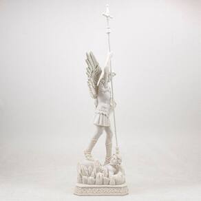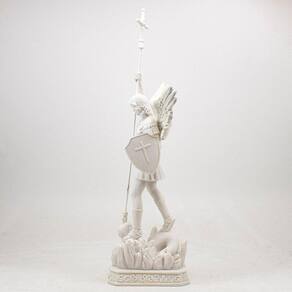 Características do produto: - Imagem de São Miguel Arcanjo com lança - Feito de resina na cor branca - Altura de 31 cm sem lança e 42 cm com lança - Largura de 18 cm e profundidade de 12 cm - Importado