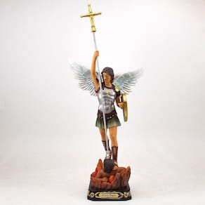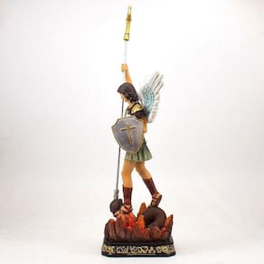 Imagem São Miguel Arcanjo Lança Resina 31 cm Arcanjo, do latim archangelus é o anjo principal ou anjo da mais alta ordem a oitava na hierarquia celeste. Segundo a mesma Bíblia os arcanjos são sete mas apenas três São mencionados: Miguel, Rafael e Gabriel. Miguel, Michael ou Micha, é um arcanjo nas doutrinas religiosas cristãs, judaicas e islâmicas. Os católicos, anglicanos, ortodoxos e luteranos se referem a ele como São Miguel Arcanjo ou simplesmente como São Miguel. É percebido como o protetor do povo de Deus, sendo assim, nós que, segundo a Tradição, somos o novo povo de Deus, devemos pedir, constantemente, a sua proteção. daniel 12, 1 Os outros podem servir como referência, mas não são doutrina. - Ariel, Azrael, Chamuel e Jofiel. Dimensões: altura: 42 cm Com Lança - Altura: 31 cm Sem Lança - Largura: 18 cm - Profundidade: 12 cm Dimensões aproximadas do produto. Marca: Não Informado