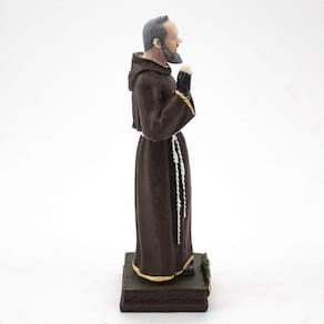 Imagem São Padre Pio Resina 14 cm São Padre Pio, buscava por meio do sacramento aliviar os sofrimentos do coração de seus fiéis e libertá-los das garras do demônio, chamado por ele de Barba Azul. Dimensões: altura: 14 cm - Largura: 5 cm - Profundidade: 5 cm Dimensões aproximadas do produto. Produto pintado a mão, podendo sofrer variações de cores. Marca: Amém Decoração Religiosa Ean: 7890499232890