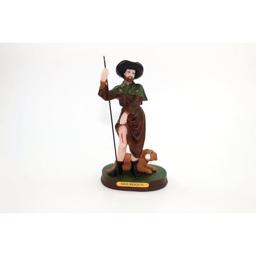 Imagem São Roque Resina 15 cm São Roque nasceu em Montpellier, na França. Também é invocado como padroeiro dos inválidos, dos cirurgiões e do gado. Ele curou muitos fazendo apenas o sinal da cruz. dizia-se que a peste fugia de São Roque. Dimensões: altura: 15 cm - Largura: 8 cm - Profundidade: 5,5 cm Dimensões aproximadas do produto. Produto pintado a mão, podendo sofrer variações de cores. Marca: Não Informado