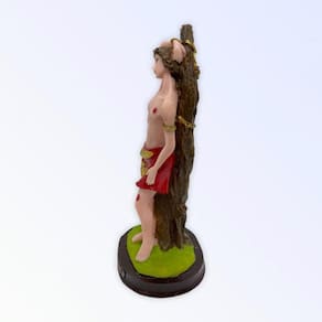 Imagem São Sebastião em Resina 15 cm São Sebastião é o protetor da humanidade contra a fome, a peste e a guerra. Além de servir como decoração, essa linda escultura em resina de alta qualidade, pintura artesanal e acabamento rico em detalhes pode ser um ótimo presente para homenagear pessoas especiais. Aplicação: decora sala, estantes, home office, altares, aparadores, mesa de canto ou escritório. É também uma ótima opção para presente, o excelente acabamento da pintura permite mais beleza e estilo para sua casa ou escritório.Especificações técnicas:Material: Resina Marca: Bialluz Presentes