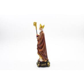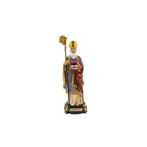 Imagem São Valentim Importada Resina 21 cm O imperador Cláudio II, durante seu governo, proibiu a realização de casamentos em seu reino. No entanto, um bispo romano Valentim continuou a celebrar casamentos, mesmo com a proibição do imperador. Descoberto Valentim foi preso e condenado à morte. Enquanto preso, muitos jovens atiravam flores e bilhetes dizendo que ainda acreditavam no amor. Entre ele estava uma jovem cega, Artérias, filha do carcereiro, a qual conseguiu a permissão do pai para visitar Valentim. Os dois acabaram apaixonando-se e, milagrosamente, a jovem recuperou a visão. O bispo chegou a escrever uma carta de amor para a jovem com a seguinte assinatura: de seu Valentim, expressão ainda hoje utilizada. Valentim foi decapitado em 14 de fevereiro de 270. Por isso o Dia dos Namorados em várias partes do mundo passou a ser chamado em inglês de Valentines day ou, dia dos Valentins, e é comemorado nesse dia. Dimensões: altura: 21 cm - Largura: 7,5 cm - Profundidade: 7,5 cm Dimensões aproximadas do produto. Marca: Não Informado
