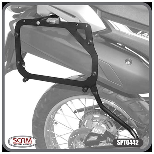Desenvolvido para comportar baús específicos Monokey, o suporte Scam para baús laterais é robusto e possui desing diferenciado, posicionando os baús laterais com firmeza e respeitando o espaço do passageiro. Também capaz de absorver impactos laterais em caso de tombos e quedas, reduz a chance de danos mais graves à motocicleta nessas situações.Especificações:• Marca: Scam• Modelos Compativeis: Lander 250 (2019 em diante)• Baús recomendados: BAEP036 / BAPP036 / E21 / E22 / E360 / E41 / E52 / E55 / V46 / V47 / TRK33 / TRK46• Capacidade: 10kg• Material: Chapa de aço carbono 5mm de espessura • Ref.: SPTO442• Cor: Preto foscoConteúdo da Embalagem:- 01 Suporte baú lateral para Lander 250 2019+ (Scam)- 01 Kit de fixação- 01 Manual de instruções