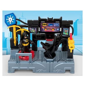Crianças em idade pré-escolar podem criar aventuras cheias de ação do Batman com este conjunto interativo da Batcaverna com luzes incríveis. O conjunto Imaginext DC Super Friends Bat Command Center inclui uma cadeira giratória e um Batcomputador iluminado, onde o Cavaleiro das Trevas pode receber sua próxima missão de combate ao crime. Com os vilões causando problemas em Gotham City, as crianças podem conectar o Batwing e o lançador de projéteis à figura do Batman e enviá-lo "voando" para o resgate.