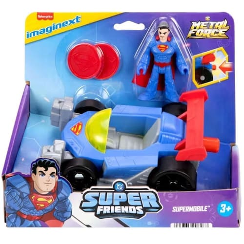 Imaginext DC Super Friends Superman - Mattel Realize grandes aventuras com o conjunto Supermobile e boneco de ação do Superman O conjunto Imaginext DC Super Friends Superman da Mattel é inspirado no DC Metal Force, permitindo que as crianças vivenciem emocionantes histórias de super-heróis. Com o Supermobile e o boneco de ação do Superman, as crianças podem lançar discos usando o lançador funcional, aprimorando suas habilidades motoras e criatividade. O boneco detalhado do Superman possui braços e pernas móveis para poses dinâmicas e é feito com plástico de alta qualidade, garantindo durabilidade para diversas aventuras de brincadeira empolgantes.