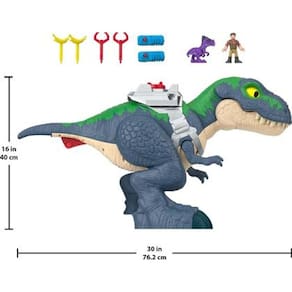 -Os pequenos fãs do Jurassic World rugiram de emoção, juntamente com o T. Rex e ação da Imaginext, da Fisher-Price, que inclui luzes, sons, movimento e muita ação. -Este dinossauro gigante de 40 cm de altura e 76,2 cm de comprimento rosna e ruge, move a cabeça e os olhos iluminam-se. -Inclui lançadores removíveis e pode segurar figuras de 7,62 cm na boca. -O conjunto inclui uma figura humana e uma de dinossauro para brincar de histórias nada mais abrir a caixa. -A ação começa com o gatilho da cauda ou a plataforma de ativação na parte superior. -Ambas as opções têm uma aderência fácil para mãos pequenas e ajudam meninos e meninas da pré-escola a desenvolver habilidades motoras finas. -A cauda com textura realista dá um toque extra de emoção. -Os fãs de dinossauros e ação podem deixar a sua imaginação voar enquanto jogam aventuras incríveis. As cores e a decoração podem variar. Características: Marca - Mattel Cód. JGR40 Tamanho - 40 Cm