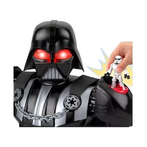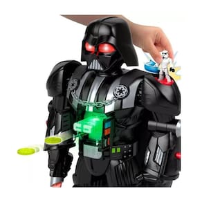Aventuras robóticas com um personagem lendário! Os jovens fãs podem conhecer o comandante militar mais famoso do Império Galáctico com a incrível brincadeira robótica do Imaginext STAR WARS Vader-Bot da Fisher-Price! Com mais de 60 cm de altura, esse robô de brinquedo interativo Darth Vader está repleto de ação controlada pelas crianças, incluindo um lançador de discos que se abre, um acessório de sabre de luz extensível e um lançador de bolas inspirado na Força, além de luzes legais e sons familiares do personagem. Inclui um brinquedo com chave do personagem Stormtrooper de 7 cm e 7 projéteis para brincar.