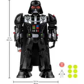 - As crianças podem dar vida ao icônico vilão Darth Vader de Star Wars para brincar de faz de conta com este robô de mais de 60 cm altura com luzes, sons e ação controlada por crianças.