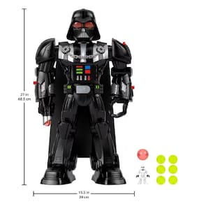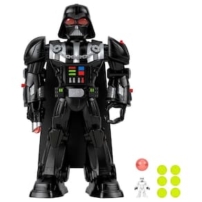 Com mais de 60 cm de altura, o Imaginext Star Wars Robô Vader-Bot da Mattel é um robô de brinquedo repleto de ação, controlado pelas crianças. Possui um lançador de discos, sabre de luz extensível e um lançador de bolas inspirado na Força. Além disso, conta com luzes e sons autênticos. Acompanha uma miniatura do personagem Stormtrooper de 7 cm e 7 projéteis para aventuras intergalácticas.