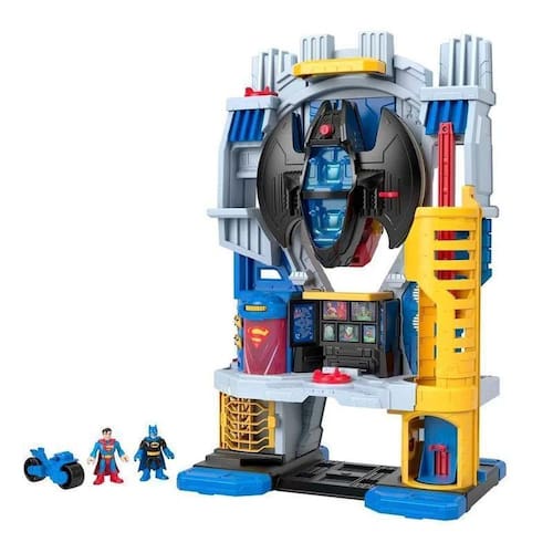 Crianças em idade pré-escolar podem encenar aventuras épicas da Liga da Justiça com o playset Imaginext DC Super Friends Ultimate Headquarters da Fisher-Price. Este playset do Hall of Justice de 2 pés de altura apresenta 4 andares de jogo para jovens combatentes do crime explorarem, luzes e sons legais, um lançador de projéteis oculto e uma cela de prisão, além de um Batwing transformador e Batcycle push-along. As crianças vão adorar colocar Batman e Superman correndo em ação para derrotar os bandidos de novo e de novo.