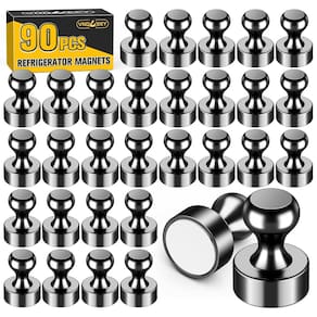 VNDUEEY Pacote com 90 ímãs pretos de geladeira, ímãs fortes para quadro branco, ímãs de geladeira, pequenos ímãs para sala de aula, cozinha, escritório, armário, mapa decorativo