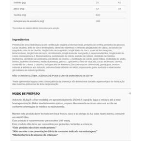 Immuno Veggie Protein Pro Glutathione Lata - Sabor: Chocolate 512,4g Immuno Veggie Protein Pro Glutathione Immuno Veggie - Pro-Glutathione é uma opção vegana indicada para todos que desejam ampliar os benefícios da proteína vegetal. A formulação com um mix de proteínas vegetais disponibiliza um completo perfil de aminoácidos e nutrientes que possuem propriedades nutricionais já comprovadas na imunidade e na síntese de substâncias importantes para o organismo - como, por exemplo, a glutationa. A glutationa é um dos antioxidantes que ajudam na desintoxicação, relacionados ao envelhecimento. Isso porque a sua função é proteger as células e as mitocôndrias contra os danos oxidativos e peroxidativos. Immuno Veggie reuniu em sua fórmula um blend de proteínas vegetais proteína de arroz hidrolisada com certificação orgânica internacional, proteína de ervilha e proteína de girassol com uma adição extra de aminoácidos como cisteína, glicina e glutamina, que possuem um papel importante na produção de glutationa. benefícios: - 22g proteína por porção;- Betaglucana de levedura;- 2000UI Vitamina D3 Vegana;- 9,9 mcg Vitamina B12;- Mix 13 vitaminas e 9 minerais;- Aminoácidos Glicina, Cisteína e Glutamina;- Fonte de boas gorduras: abacate e coco, fontes de ômegas 3, 6 e 9;- Cacau puro;- Adoçado com estévia; Marca: Não Informado Ean: 7908793300044