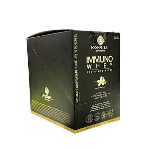 Immuno whey pro glutathione display - sabor: baunilha 15 sachês 25g Immuno whey pro glutathione display whey protein hidrolisado e isolado com adição extra de aminoácidos específicos e nutrientes envolvidos no funcionamento do sistema imune. Ao whey protein isolado e hidrolisado, adicionamos os aminoácidos - cisteína, glicina e glutamina - precursores da glutationa, além de vitaminas e minerais, cofatores nesse processo de síntese. Para deixar a fórmula ainda mais completa, incluímos a taurina, a vitamina c e o mix de tocoferóis, potencializando o poder antioxidante do produto, além da betaglucana de levedura beta - 1,3/1,6 glucan , conhecida por suas grandes propriedades. Potencializamos os efeitos do whey protein. Se quando a gente fala whey protein você pensa apenas no ganho de massa, pense além do óbvio. O whey protein é uma substância muito estudada pela ciência e suas indicações são diversas. A glutationa é um importante antioxidante relacionado ao sistema imune e produzido naturalmente pelo nosso corpo. Com o passar dos anos, no entanto, essa produção diminui. Immuno whey - pro-glutathione é fonte dos principais precursores de glutationa, além de outros nutrientes envolvidos no funcionamento do sistema imune. Cisteína + glutamina + glicina a glutationa é produzida a partir de nutrientes específicos: aminoácidos que formam a sua estrutura cisteína, glutamina e glicina e vitaminas e minerais que participam das reações complementares durante o seu processo de síntese vitamina b2, magnésio e selênio . Benefícios: - 22g proteína por porção;- aminoácidos: glicina, cisteína e glutamina;- betaglucana de levedura;- whey protein hidrolisado e isolado thermax 690 e provon 292 ;- aminoácidos precursores da produção natural de glutationa cisteína, glicina e glutamina ;- vitaminas e minerais, cofatores na produção natural de glutationa;- taurina;- purified beta - 1,3/1,6 - glucan;- puro cacau;- estévia. Não contém - proteínas concentradas;- caseína;- açúcar;- glúten;- lactose;- conservantes;- adoçantes artificiais;- aromas artificiais;- corantes artificiais.