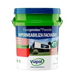 Impermeabiliza Fachadas Fuseprotec Parede Branco 14L Viapol Impermeabiliza Fachadas Fuseprotec Parede Branco 14L Viapol O Fuseprotec da Viapol é uma pintura impermeabilizante acrílica, indicada para proteção de infiltrações de água provocadas pelas batidas de chuvas em paredes, muros e fachadas. Já vai pronto para uso. É utilizado como selador primeira Demão , impermeabilizante segunda Demão e acabamento a partir da terceira demão como pintura convencional. - Marca: Viapol- Modelo: Fuseprotec Fachadas- Cor: branco- Aspecto do produto: Brilhante- Secagem ao toque: Máximo 30 minutos- Tempo de secagem entre demãos: 3 a 4 horas- Secagem final: 24 horas- Teor de sólidos: 15,50%- VOC: 37 g/litro- Conteúdo: 14 L- Rendimento: mais de 160m- Baixo odor- Fácil aplicação e manuseio- Produto Ecológico à base dágua- Permite à difusão de vapor mesmo sendo impermeável a água- Não impregna sujeira, não amarela e não descasca- Utilização: Áreas internas e externas, Pedras naturais em fachadas, Estruturas de concreto aparente, Tijolos aparentes, Telhas cerâmicas naturais, telhas de fibrocimento- Quantidade: 1 unidade- Peso: 19 kg- Dimensões do produto: 30,0 x 34,0 x 30,0 L x A x P - Garantia: 30 dias