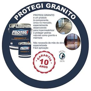 Protegi Granito R é a solução definitiva para proteção e impermeabilização de pisos de granitos e mármores sendo uma das poucas soluções que possuem histórico de sucesso em milhares de metros quadrados aplicados.De fácil e simples aplicação, Protegi Granito R não necessita de mão de obra especializada e seu sucesso não para de crescer no mercado. Protegi Granito R é patenteado, produto único no mercado, com mais de 20 anos de existência e de aplicações bem sucedidas.O único com garantia de 10 anosINDICAÇÕES:Resina de alta resistência química, abrasão e água. Destina-se a aplicação em pedras naturais como Granito e Mármore para proteção e impermeabilização sob a superfície.INFORMAÇÕES PRÁTICAS:Cor....................................: TransparenteSólidos por volume.....: 30 por centoEspessura seca.............: 25 micrômetros por demão, equivalentes a 83 micrômetroRendimento teórico....: 18 a 20 m2/kit Componente A + Componente B , baseado na espessura seca de 25 micrômetros.Rendimento prático....: Deduzir do rendimento teórico os percentuais relativos à perdas estimadas paraCondição específica da pintura.Estocagem.....................: Guardar em local seco, abrigado e ventilado até 12 mesesPonto de fulgor............: Maior que 30ºCTIPOS DE PEDRAS:Granitos e mármores claros e escuros CARACTERÍSTICA DA RESINA:Resina bi componente insaponificável, elevada resistência química à abrasão e a água. 32 por cento SV, 78 EFU e 25 EFS, VOC= 580g/litroEMBALAGEMLata maior:Diâmetro: 16,70 cmAltura: 18 cmCapacidade 3.6 LConteúdo: 2.8 LPeso total: 3.75 KgLata menor:Diâmetro: 10,70 cmAltura: 11,50 cmCapacidade 900 mlConteúdo: 720 mlPeso total: 820 gMedidas da Caixa:Largura: 20 cmComprimento: 30 cmAltura: 20 cmPeso da embalagem de papelão: 240 gPeso total incluindo o peso da caixa: 4.81 Kg Marca: Protegi Impercia