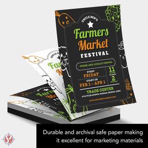 Feito de papel Bond de 24 lb/60 lb de texto (90 g/m2) e sem ácido e sem lignina para evitar que suas impressões e designs fiquem desbotados e quebradiços com o tempo.