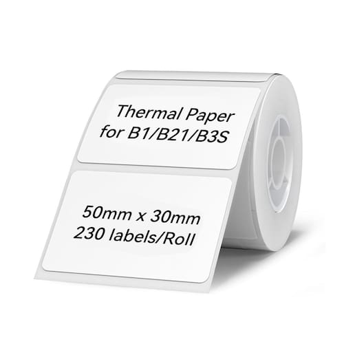 NIIMBOT Etiquetas para impressora de etiquetas B1/B21/B3S, 50 × 30 mm, papel adesivo impermeável, substituição de etiquetagem de endereço de entrega com autoadesivo - 1 rolo de 230 peças (branco) - Fita adesiva NIIMBOT Label Make: esta fita térmica de etiquetas é especialmente adequada para impressoras modelo B1/B21/B3S. Há 1 rolo de papel de etiqueta branca no total, com tamanho de 50 x 30 mm, cada rolo com 230 etiquetas de impressora. - ?Impressão por transferência térmica?Adotando tecnologia de impressão por transferência térmica, impressão sem tinta ou cartucho. Com melhor qualidade com aderência mais forte. Impressão clara, sem desbotamento da cor, à prova d'água, antióleo, resistente a rasgos, não tóxico, inofensivo e degradável. - ?Aplicações amplamente utilizadas?Esta etiqueta de impressora é amplamente utilizada no dia a dia, para classificação doméstica, organização de escritório, exibição de negócios, etc. É claro e pequeno o suficiente, e é o seu assistente útil em sua vida diária. - Aviso: o adesivo na lateral do rolo contém um chip de sensor de impressão. Não rasgue ou destrua o adesivo, caso contrário, isso afetará o efeito de impressão. - ?Atendimento ao cliente de marca confiável?Compre em nossa loja, aproveite a política de devolução da Amazon. Além disso, depois de se tornar nosso valioso cliente, você poderá desfrutar de um atendimento ao cliente prime vitalício, forneceremos suporte técnico e responderemos a todas as perguntas a tempo.