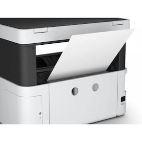 A multifuncional Epson EcoTank M2170 é um modelo de última geração, que conta com a exclusiva tecnologia Precision Core em sua cabeça de impressão, proporcionando impressões mono com qualidade laser, porém com a máximo rendimento dos tanques de tinta EcoTank, gerando economia de até 90% em comparação com as impressoras a laser. Com conectividade wireless e função duplex, a M2170 possui excelente relação custo-benefício na impressão de documentos com rapidez e alta resolução e nitidez. A EcoTank M2170 chega a imprimir até 39 páginas por minuto, além de contar com duplex automático, imprimindo frente e verso da folha, melhorando a produtividade e reduzindo o consumo de papel na empresa. A M2170 possui resolução máxima de impressão de 1200 x 2400 dpi, proporcionando imagens e textos com máxima nitidez, mesmo em fontes pequenas. A M2170 possui bandeja com capacidade para 250 folhas A4, e é compatível com papéis com acabamentos especiais, como papel fosco, brilhante, e auto-adesivo. Com o sistema de tanque de tinta EcoTank, a multifuncional Epson M2170 é capaz de imprimir até 11.000 páginas com as duas garrafas de tinta já inclusas com o equipamento. Além disso, a M2170 possui scanner de base plana, com resolução máxima de 1200 x 2400 dpi. Com a conectividade wireless é possível enviar o arquivo digitalizado diretamente para o seu notebook ou smartphone. Além de seu design moderno, a M2170 possui conectividade Wi-Fi Direct, que permite a utilização através de notebook, tablet ou smartphone, sem a necessidade de roteador ou acesso à internet.