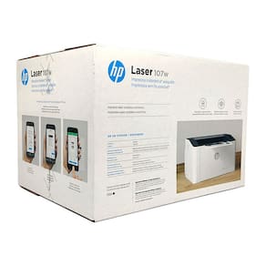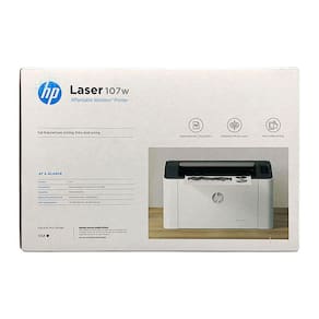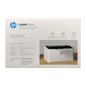 4ZB78A HP Laser 107W; Cartucho de toner LaserJet preto introdutório original pré-instalado (~500 páginas); Guia de configuração; Guia de referência; Folheto de instruções regulamentares; Cabo de alimentação; Cabo USB