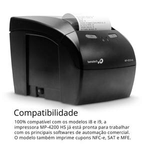 A Impressora Térmica Não Fiscal Bematech MP-4200 HS USB Serial e Ethernet garante agilidade em toda operação que demande a impressão de comprovantes térmicos. Ofereça mais agilidade, performance e produtividade no seu frente de caixa com a Impressora Não Fiscal Bematech MP-4200 HS. É o mais novo modelo de impressora térmica com qualidade de impressão e desempenho único. Ideal para pequenos e médios estabelecimentos, a Impressora MP-4200 HS conta com excelente custo benefício e atende as demandas de impressão do seu PDV, aumentando a produtividade no seu frente de caixa. Para agilizar o atendimento no caixa, a Impressora MP-4200 HS corta automaticamente os cupons em cada impressão. A Impressora também imprime cupons NFC-e, SAT e MFE. Esse modelo conta com 3 interfaces de comunicação: USB, Serial e Ethernet. Além disso, a Impressora Bematech MP-4200 HS é 100% compatível com os modelos i8 e i9 e pronta para trabalhar com os principais softwares de automação comercial.