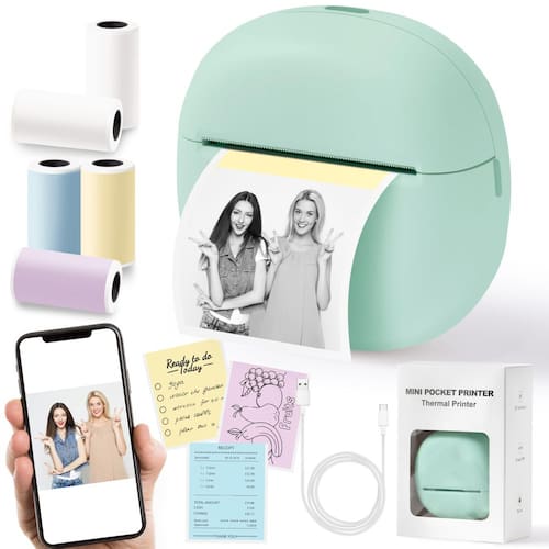 - Impressoras térmicas sem tinta: nossa impressora de bolso sem fio com tecnologia térmica vem com 3 rolos de etiquetas térmicas brancas e um rolo de cada adesivo rosa, amarelo e azul para imprimir sem tinta, e as folhas de adesivos termoimprimíveis de 2 polegadas de largura podem ser cortadas em qualquer comprimento, formato ou tamanho, ótimas para estimular sua criatividade. (As cores de impressão são somente em preto e branco)