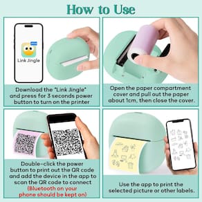 - Fácil de usar: a impressora é compatível com dispositivos iOS e Android, siga as etapas no manual para baixar o aplicativo “Link Jingle”, conecte-se ao aplicativo em seu telefone via Bluetooth e você pode imprimir após uma conexão. (Consulte o manual ou as fotos para obter detalhes passo a passo)