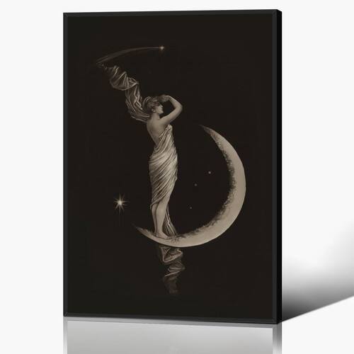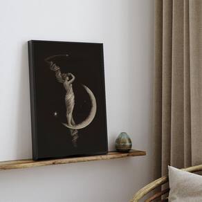 Entre em um mundo de elegância e mística com esta linda impressão Art Nouveau. O design complexo apresenta uma mulher graciosa entrelaçada com uma lua crescente, incorporando o charme e a sofisticação do movimento artístico do início do século XX.