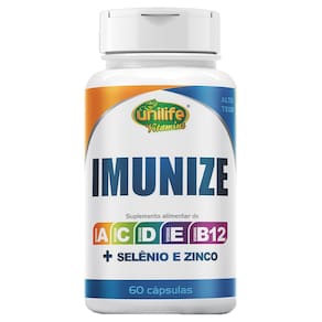 Imunize é um suplemento alimentar com Selênio, Zinco e Vitaminas A, C, D, E e B12 com Alto Teor. Possui 60 cápsulas de 600mg cada.