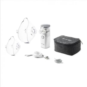 Chegou o Easy Air Inalador Mesh, trazendo mais alívio e menos crises respiratórias. Silencioso e portátil, o inalador Mesh produz partículas em tamanhos ideais para serem absorvidas pelo corpo, aceitando todos os tipos de soros e medicamentos, incluindo os que possuem corticoides. Aceitação universal de medicamentos. Use com pilhas ou via cabo USB, Silencioso, Único toque: Aperte somente um botão para começar a inalação, Fácil higienização: Desencaixe o reservatório para limpá-lo facilmente.