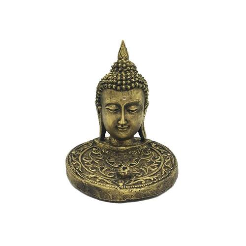 Incensário Buda Hindu Tailandês Dimensões: -altura: 12 cm. -comprimento: 10,5 cm. -largura: 10,5 cm. Composição: - Tinta e gesso. Características: -possui espelhos no fundo do recipiente proporcionando um toque místico. - O incenso deve ser colocado no orifício localizado na parte dianteira entre os pés . - Utiliza incenso tipo palito. - Purifica o ambiente. - Possui proteção anti- risco na parte de baixo evitando danos ao móvel. - Fabricado em gesso de excelente qualidade. - Ecologicamente correto. - Semi artesanal, pintado a mão, por esta razão pode ocorrer variação de tonalidade. - O produto utilizado no acabamento, efeito metalizado em ouro velho, possui excelente qualidade, proporcionando maior resistência a peça. Peso: 200,00 gramas. Marca: Abiasafe