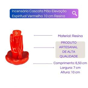 Incensário Cascata Mão Espiritual Resina 10cm-Escolha a Cor Cor: Vermelho Incensário Cascata Mão Espiritual Resina 10cm-Escolha a Corx000D x000d O incensário Cascata Mão Espiritual da Bialluz possui um formato moderno que permite que a fumaça do incenso passe por todo incensário formando um efeito surpreendente e muito legal visualmente. O nosso Incensário acompanha uma linda mini estatueta de Mão Espiritual, que trará bons fluídos e paz para o seu ambiente.x000d x000d Escolha uma das cores disponíveis na opção COR do próprio anúncio.x000d x000d Confeccionado em resina nosso incensário possui muita qualidade e alta resistência. x000d x000d Enviamos o seu incensário em até 24 horas após a confirmação de pagamentox000D x000d Dimensões aproximadas:x000D Altura: 10 cmx000D Largura: 7 Comprimento: 6,5 Peso: 167 gramasx000D Material: Resinax000D x000d Por ser uma peça feita artesanalmente e pintada à mão podem ocorrer pequenas variações nas cores ou tamanhos.x000d x000d Caso tenha alguma dúvida nos mande mensagem que respondemos rapidinho para te ajudar da melhor forma possível Marca: Não Informado