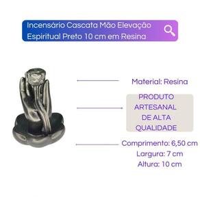 Incensário Cascata Mão Espiritual Resina 10cm-Escolha a Cor Cor: Preto Incensário Cascata Mão Espiritual Resina 10cm-Escolha a Corx000D x000d O incensário Cascata Mão Espiritual da Bialluz possui um formato moderno que permite que a fumaça do incenso passe por todo incensário formando um efeito surpreendente e muito legal visualmente. O nosso Incensário acompanha uma linda mini estatueta de Mão Espiritual, que trará bons fluídos e paz para o seu ambiente.x000d x000d Escolha uma das cores disponíveis na opção COR do próprio anúncio.x000d x000d Confeccionado em resina nosso incensário possui muita qualidade e alta resistência. x000d x000d Enviamos o seu incensário em até 24 horas após a confirmação de pagamentox000D x000d Dimensões aproximadas:x000D Altura: 10 cmx000D Largura: 7 Comprimento: 6,5 Peso: 167 gramasx000D Material: Resinax000D x000d Por ser uma peça feita artesanalmente e pintada à mão podem ocorrer pequenas variações nas cores ou tamanhos.x000d x000d Caso tenha alguma dúvida nos mande mensagem que respondemos rapidinho para te ajudar da melhor forma possível Marca: Não Informado