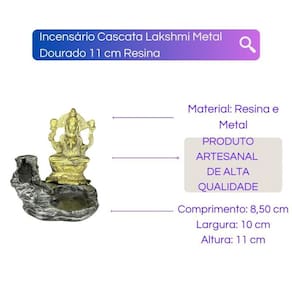 Incensário Cascata OM Lakshmi Gaya Resina- Escolha o Modelo Cor: Lakshmi Metal Dourado 11cm Incensário Cascata OM Lakshmi Gaya Resina- Escolha o Modelo