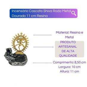 Incensário Cascata Parvath Shiva Buda Ganesha- Escolha a Cor Cor: Cascata Shiva Metal 11cm Incensário Cascata Parvath Roda Metal Dourado Resina 12 cm