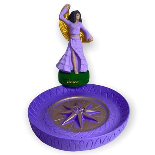 O Incensário Prato Cigana da Bialluz é perfeito para quem gosta de um design minimalista e elegante Possui um ótimo formato que combina com qualquer ambiente, além de um tamanho que cabe em qualquer mesa ou estante. É ideal para utilizar com o incenso vareta tradicional que exala uma fragrância muito agradável. O nosso Incensário conta com uma linda mini estatueta da Cigana em sua base, que trará bons fluídos e paz para o seu ambiente.