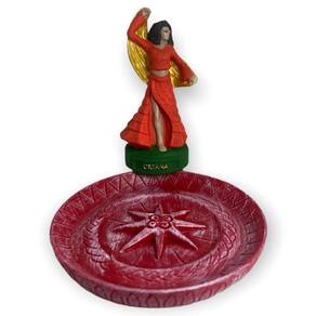 O Incensário Prato Cigana da Bialluz é perfeito para quem gosta de um design minimalista e elegante Possui um ótimo formato que combina com qualquer ambiente, além de um tamanho que cabe em qualquer mesa ou estante. É ideal para utilizar com o incenso vareta tradicional que exala uma fragrância muito agradável. O nosso Incensário conta com uma linda mini estatueta da Cigana em sua base, que trará bons fluídos e paz para o seu ambiente.