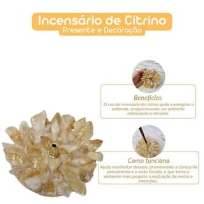 Uma peça luminosa que une a beleza do citrino com a funcionalidade de um incensário. Conhecido como a pedra da Abundância e da Prosperidade, o citrino tem energias positivas que ajudam a manifestar sucesso, abundância e felicidade. Ao utilizar esse incensário, você não só cria um ambiente perfumado, mas também ativa a energia de prosperidade e clareza em seu espaço.