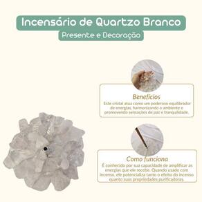 Combina a beleza do cristal de quartzo com a funcionalidade de um incensário. O quartzo branco é conhecido como a pedra da luz, sendo altamente valorizado tanto por sua energia purificadora quanto pela sua estética suave e brilhante. Quando utilizado em um incensário, o quartzo branco amplifica as propriedades dos incensos, criando um ambiente de equilíbrio, serenidade e proteção.