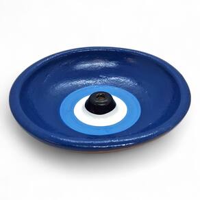 Afaste as energias negativas e eleve a vibração do seu ambiente com o Incensário Peruano Modelo Olho Grego. Com 9 cm de diâmetro, essa peça artesanal feito a mão combina a força simbólica do olho grego com o toque autêntico da arte.