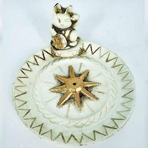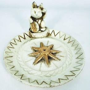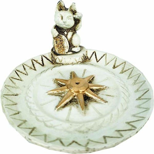 Manxs, um Incensário Pratinho Maneki Neko Gato da Sorte, que coleta as cinzas e não suja o móvel.