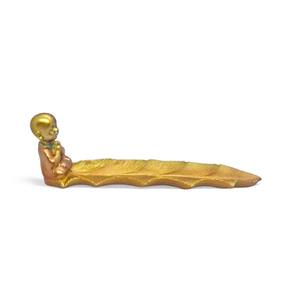 Incensário Vareta Buda Meditando Detalhes em Dourado 20 cm