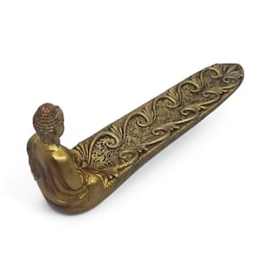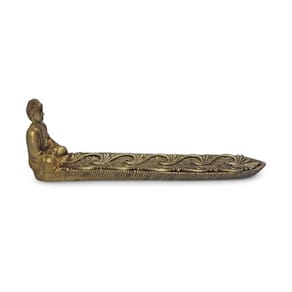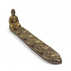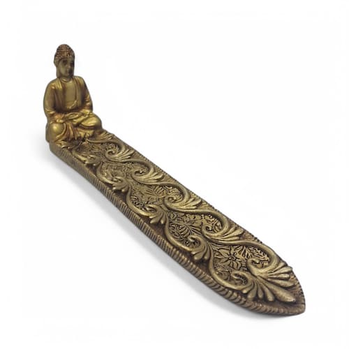 Lindo Incensário importado em resina. Pode ser utilizado com incenso de vareta e com velas aromáticas. Possui inscrições de Buda, pintura artesanal de alta qualidade e um dourado brilhante, remetendo às riquezas do ouro.