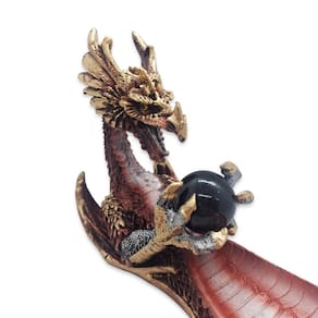 Incensário do Dragão Celestial com bola de cristal para 1 vareta. Além de funcionar como um incensário, ele também serve como um lindo enfeite decorativo para tornar seu ambiente mais rico. O dragão possui o significado de sabedoria, força, poder, proteção e riqueza.