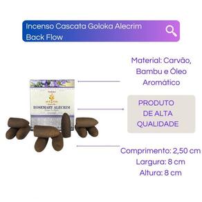 Incenso Cone Cascata Goloka Back Flow - Selecione o Aroma Cor: Alecrim Incenso Cone Cascata Goloka Back Flow - Selecione o Aromax000D Conteúdo da embalagem: uma caixinha com 10 incensos cones tradicional.x000d Fabricação em massala - origem: Índia.x000d x000d Escolha um Aroma disponíveis na opção COR do próprio anúncio.x000d x000d Caixinha contém 10 cones refluxox000D x000d Composição: carvão aglutinante, varetas de bambu, óleo aromático de sândalo e essências.x000d x000d Como usar: x000D Mantenha o incensário afastado de correntes de ar ou vento se não a fumaça não irá se movimentar corretamente.x000d Acenda a ponta do incenso goloka até ele ficar avermelhado em brasa e a fumaça sair por baixo do incenso.x000d Após isso coloque o incenso no incensário e ele queimará por até 20 minutos.x000d x000d Enviamos o seu produto em até 24 horas após a confirmação de pagamentox000D x000d Caso tenha alguma dúvida nos mande mensagem que respondemos rapidinho para te ajudar da melhor forma possível Marca: Bialluz