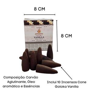 Incenso Cone Cascata Goloka Back Flow - Selecione o Aroma Cor: Vanilla Incenso Cone Cascata Goloka Back Flow - Selecione o Aromax000D Conteúdo da embalagem: uma caixinha com 10 incensos cones tradicional.x000d Fabricação em massala - origem: Índia.x000d x000d Escolha um Aroma disponíveis na opção COR do próprio anúncio.x000d x000d Caixinha contém 10 cones refluxox000D x000d Composição: carvão aglutinante, varetas de bambu, óleo aromático de sândalo e essências.x000d x000d Como usar: x000D Mantenha o incensário afastado de correntes de ar ou vento se não a fumaça não irá se movimentar corretamente.x000d Acenda a ponta do incenso goloka até ele ficar avermelhado em brasa e a fumaça sair por baixo do incenso.x000d Após isso coloque o incenso no incensário e ele queimará por até 20 minutos.x000d x000d Enviamos o seu produto em até 24 horas após a confirmação de pagamentox000D x000d Caso tenha alguma dúvida nos mande mensagem que respondemos rapidinho para te ajudar da melhor forma possível Marca: Não Informado Ean: 7894135824722